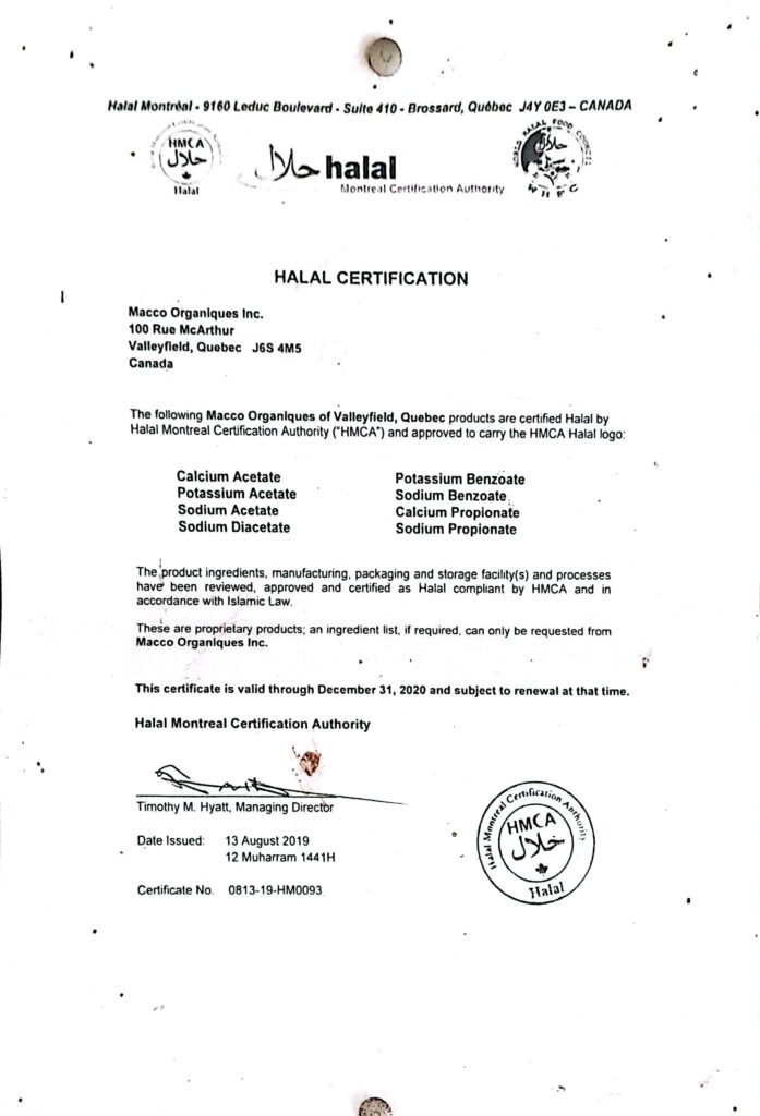 Macco Organiques Inc. products are certified halal by Halal Montreal Certification Authority.